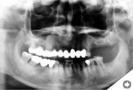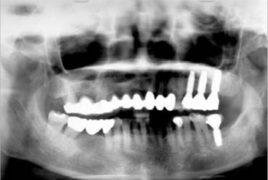 Brak górnych trzonowców (brak skrzydłowy). Dostateczny wymiar pionowy kości umożliwia implantację. W takim przypadku jedyną alternatywą dla implantów jest ruchoma proteza - wykonanie mostu jest niemożliwe.