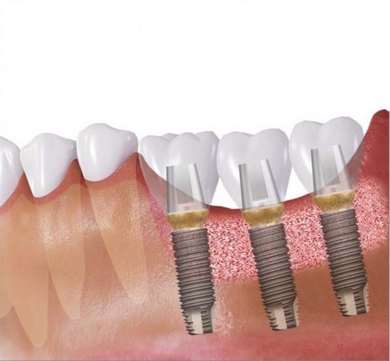 Przeszczep kości. W niektórych sytuacjach jest to jedyna skuteczna metoda odbudowy zanikłej kości. Zabieg polega na pobraniu fragmentu tkanki kostnej z innego miejsca jamy ustnej (albo przy większych przeszczepach z biodra) i następnym umocowaniu go w miejscu odbudowywanym. W ciągu kilku miesięcy następuje wgojenie się przeszczepu -€“ zamienia się on w pełnowartościową kość.